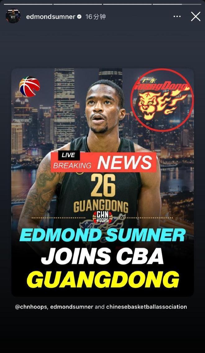 CBA交易市场上一夜之间,又起风云,据国内篮球博主“chnhoops”社媒消息,上个赛季效力于四川男篮的强力外援艾德蒙-萨姆纳新赛季将加盟广东男篮。