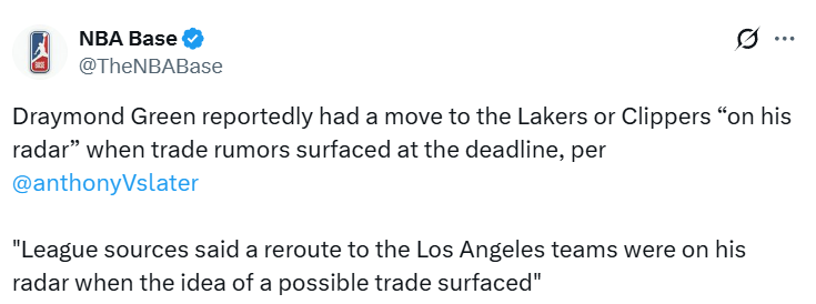 格林可以在今年夏天跳出合同,再次进入完全自由球员市场。联盟消息人士称,当交易传闻出现时,加盟洛杉矶两支球队(湖人和快船)的想法曾出现在他的考虑范围内。