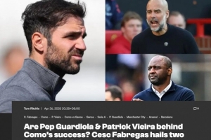 体育资讯4月26日讯 意甲第34轮,法布雷加斯执教的科莫将在主场对阵维埃拉执教的热那亚。赛前法布雷加斯被问到了关于足球榜样的话题。